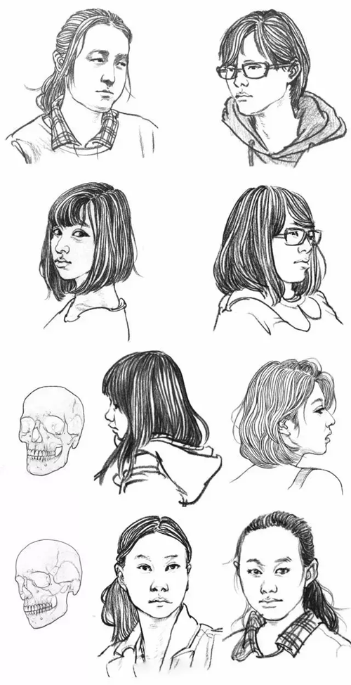 頭部是否生動,并非靠長相,更多是動態(tài)與人物表情的捕捉。動態(tài)是指人物身體的扭曲,包括頭部,人物的表情則是喜怒哀樂。將這些加入你的畫面,必然會使作品生趣盎然。