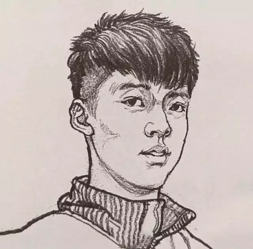頭部是速寫中較為復(fù)雜的一部分知識點(diǎn),在人物全身速寫中,它往往起到畫龍點(diǎn)睛的效果。對人物速寫的神情的捕捉,是速寫能力訓(xùn)練中的一個很高的要求,這主要體現(xiàn)在五官的塑造上。