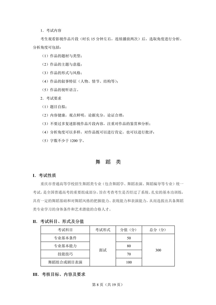 2022年重慶藝術(shù)類專業(yè)統(tǒng)考考試大綱