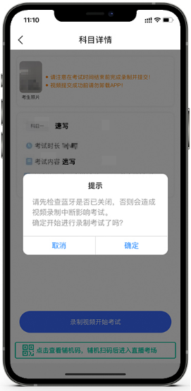 注:如輔機出現(xiàn)關(guān)機、鎖屏、意外中斷等情況,請考生點擊主機錄制頁面左上角的【輔機碼】彈出二維碼,重新掃碼錄制或者點擊輔機屏幕上的【繼續(xù)錄制】按鍵。