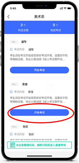 9:30主機點擊素描科目開始考試進入科目詳情;輔機掃碼進入監(jiān)考;在試卷正面左上角粘貼條形碼并按右手食指指紋;在試卷背面右上角用黑色簽字筆正楷寫上姓名和準考證號。