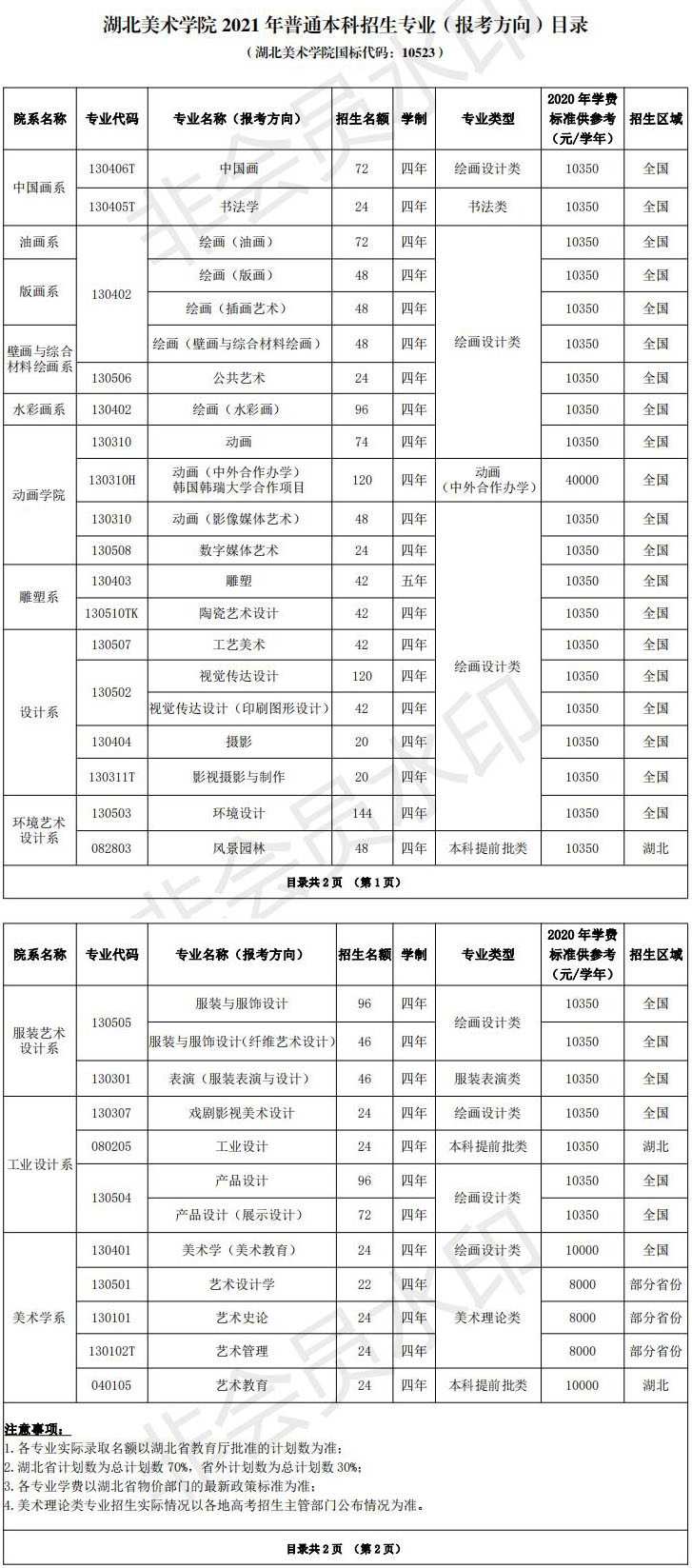 第十九條 每名考生在所報考類別均限一場。校考考試時間、地點及安排、考試科目等要求詳見《湖北美術(shù)學(xué)院2021年普通本科招生專業(yè)考試基本安排表》。各專業(yè)簡介請登錄湖北美術(shù)學(xué)院官網(wǎng)(http://www.hifa.edu.cn/)查詢。