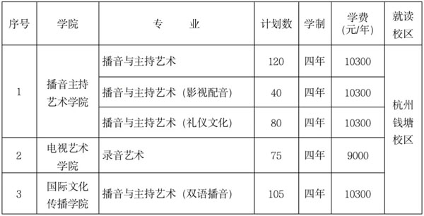 【注】:以上廣電藝術類本科專業(方向)面向全國招生,考生按各省考試院(招生辦)規定參加我校組織的考試。