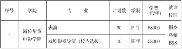 【注】:1.表演專業:①甘肅、廣東、河北、黑龍江、江蘇、江西、內蒙古、山東、陜西、天津、新疆等11個省份的考生,按各省考試院(招生辦)規定參加我校組織的考試;②浙江、安徽、福建、貴州、河南、湖北、湖南、遼寧、山西、上海、四川、重慶等12個省份的招生,專業成績承認相應省統考成績。